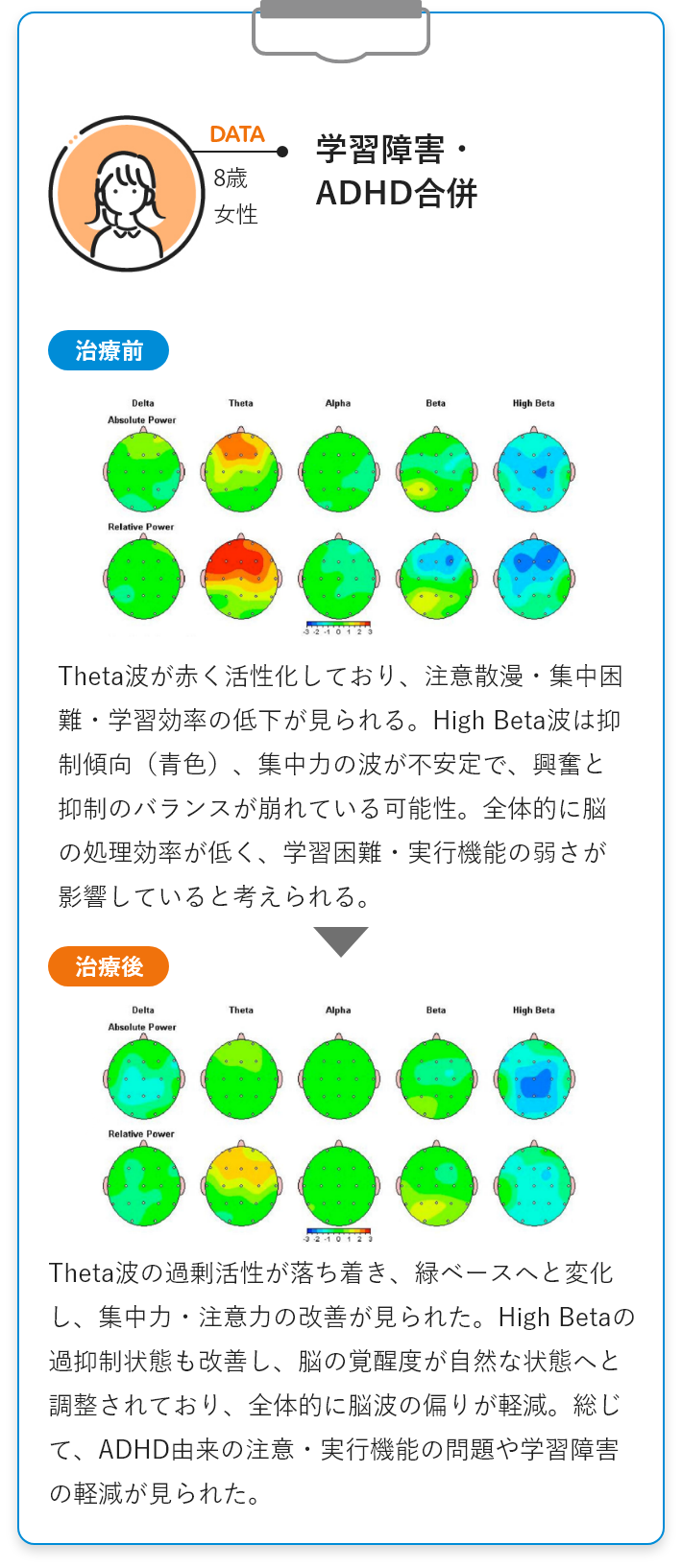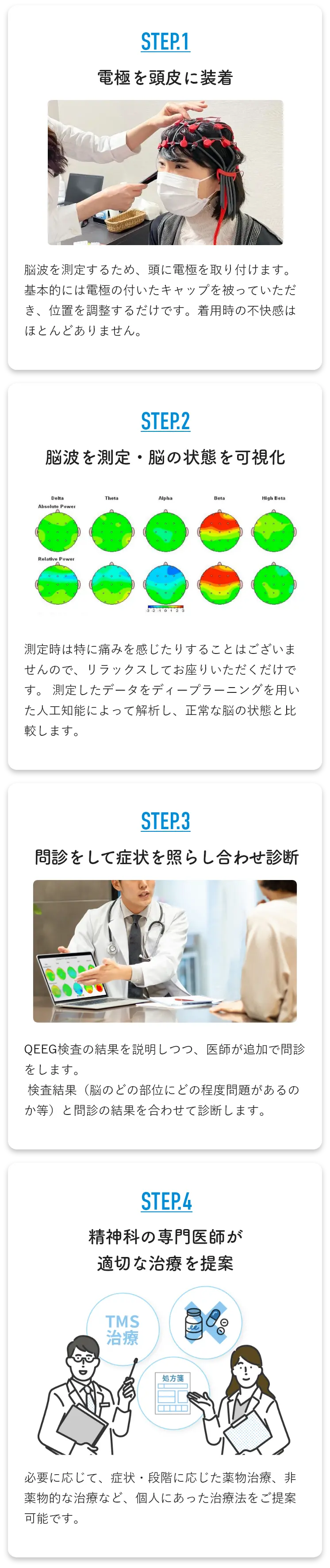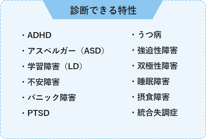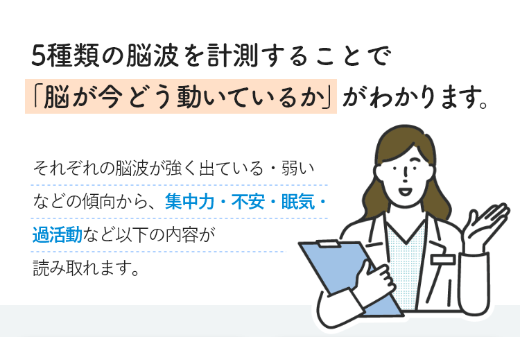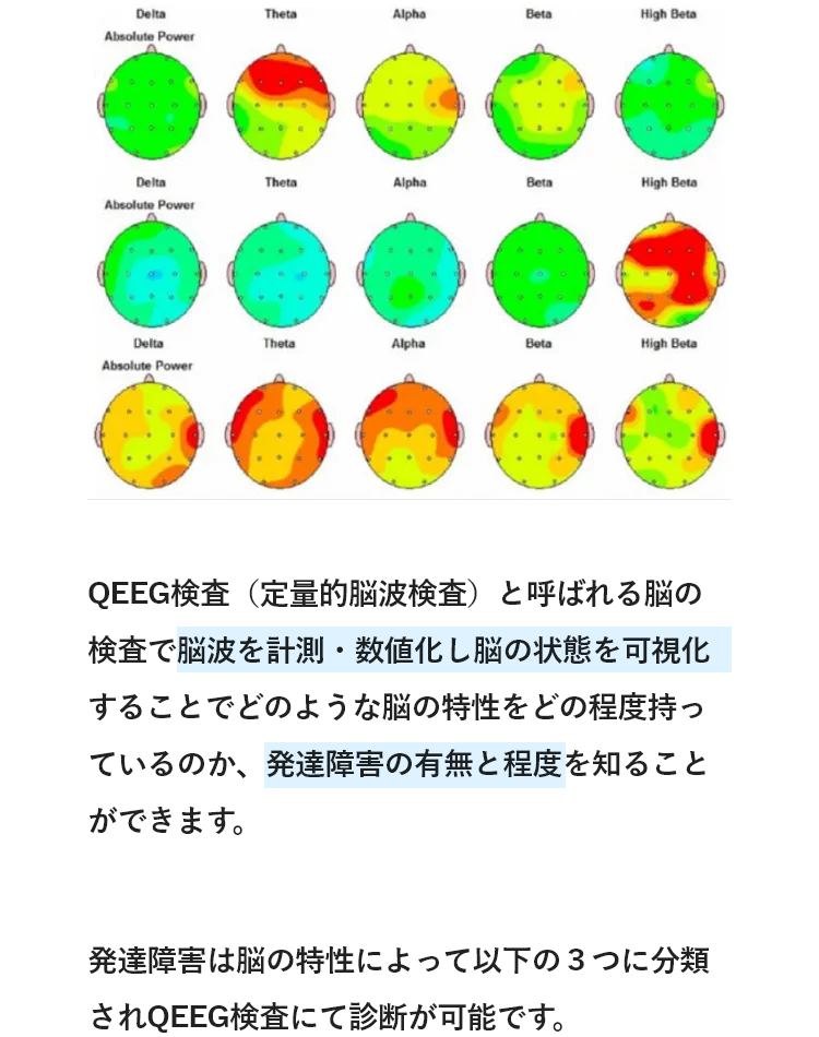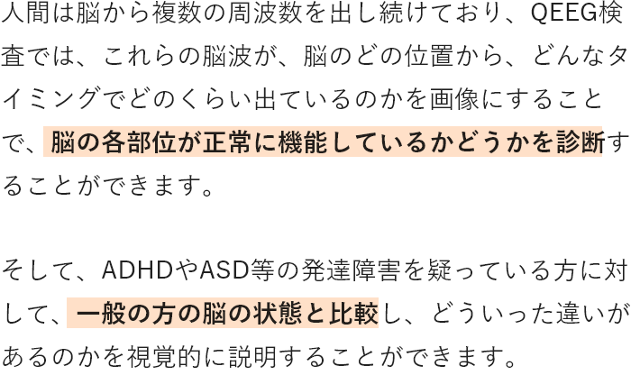 QEEG検査は、米食品医薬品局(FDA)より承認されている最先端医療であり、脳の‟状態”や‟傾向”を客観的に把握できる検査法です。
