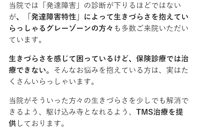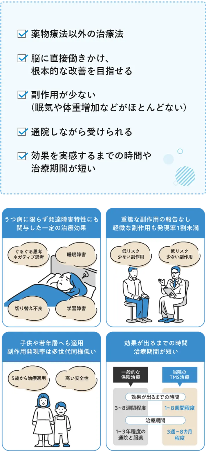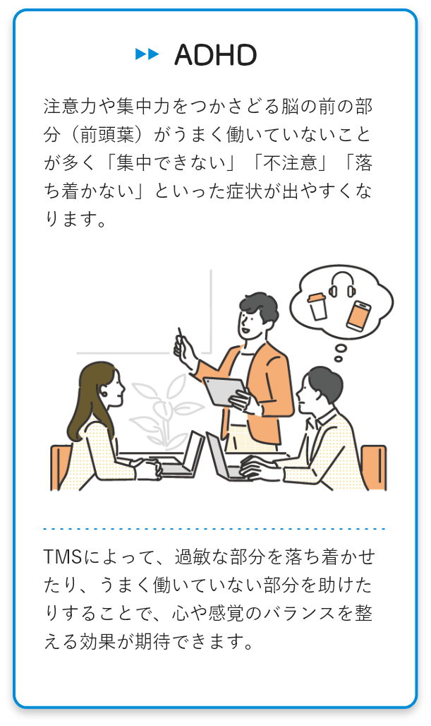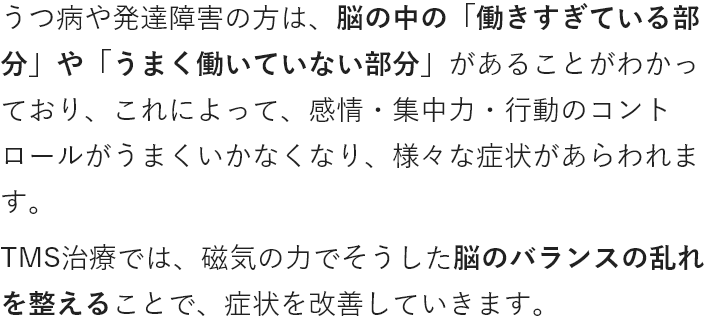 TMS治療は発達障害特性に対し高い効果を実感されている患者さまが多くいらっしゃいます。