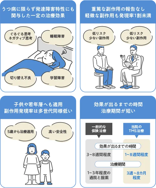 TMS治療は発達障害特性に対し高い効果を実感されている患者さまが多くいらっしゃいます。