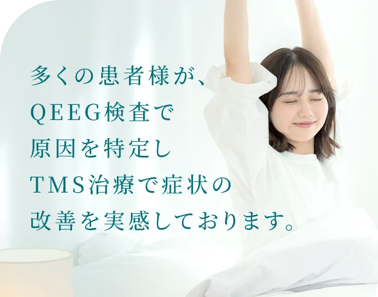 中途覚醒など睡眠の質が悪かったが、QEEG検査で脳波を調べ、TMS治療から中途覚醒がなくなり日中も過ごしやすくなった。